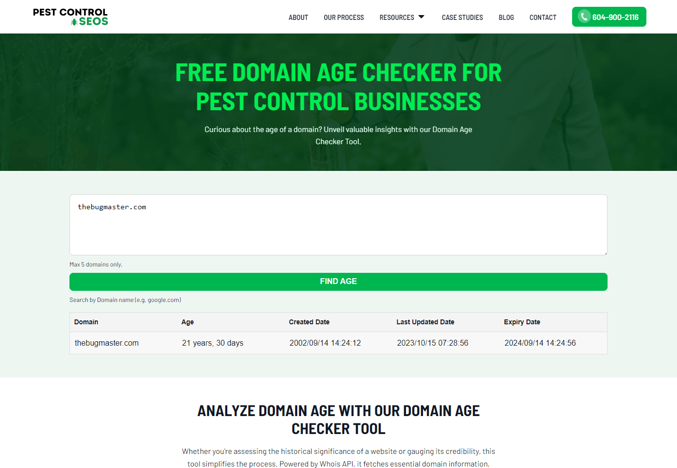 PestControlSEOs also offer a suite of simple web-based tools for pest control businesses, which were also ported to the new design. The client requested an easys way to add extra content to each tool, which was achieved with an FAQ section.
